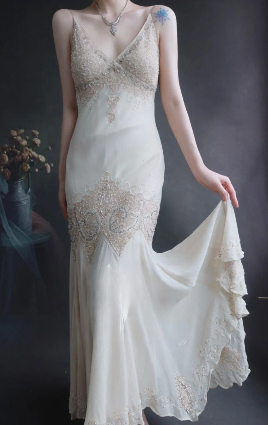 Ndyad V-neck Mermaid Long Prom Dresses Beaded Chiffon Evening Dresses HZ1024